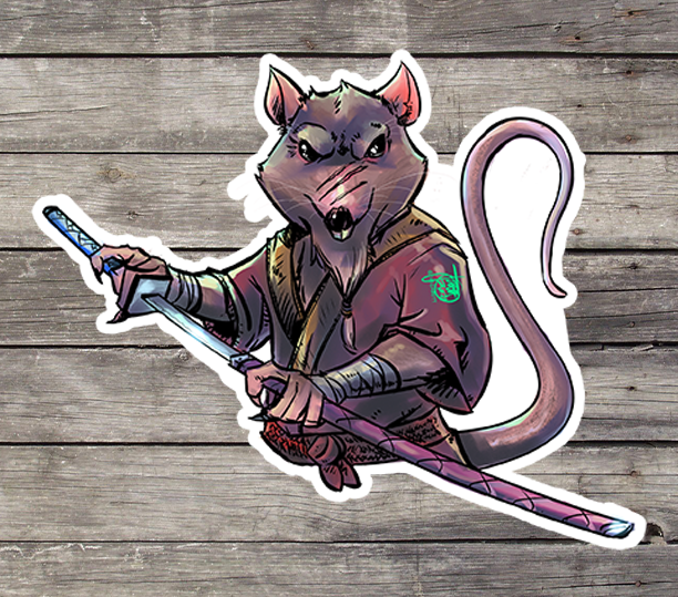I grew up drawing the Ninja Turtles all the time, but I know I didn't often draw their wise Master. When he became a voter choice, I was pretty excited, but nervous since I don't draw anthropomorphic characters much, but he turned out so great. Splinter is available as an 8.5 x 11" high-gloss premium art print; a 6 x 4" postcard; and a 5" matte weatherproof art sticker. Available as a pack of each or individually.
